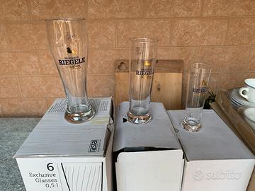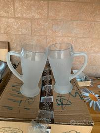 Vendita in blocco o separatamente. 18 bicchieri nuovi da bibita o birra. 10 bicchieri nuovi satinati con manico. 15 tazze con piattino da cappuccino.