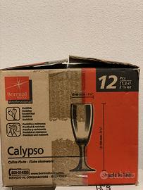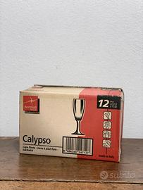 Vendo Flute Fluttino Calypso Bormioli Scatola da 12 pezzi Perfetti senza alcun segno d’usura Altezza 16 cm Larghezza 4,6 cm Capacità di 11,3 cl