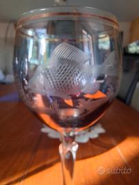 Bicchieri vino in cristallo Bohemia, finemente lavorati a mano, con finiture in oro sul bordino.