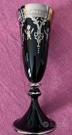 6 bicchieri (3+3) in cristallo nero con decori in lamina d’argento 900. Articolo di pregio, Griffe, Vetretie d’Empoli, Via Montenapoleone Milano #bicchieri #cristallo #argento #griffe #vetreriedempoli
