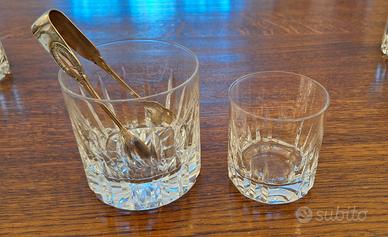 Set di 6 bicchieri in cristallo lavorato da whisky più portaghiaccio coordinato. P.S. disponibili eventualmente altri 6 bicchieri.