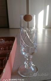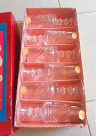 Set di 6 bicchieri in cristallo molato, francese, in perfette condizioni fatti a mano, con certificati di garanzia su ogni bicchiere. La scatola ha subito un po lo scorrere del tempo ma non ha danni importanti. Articolo Vintage anni 70 mai utilizzato nella sua confezione originale. Taglio Alemanne - Made en France