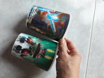 vendo 2 bicchieri in plastica resistente marcati MC, h 10 cm, con visione 3D, oggetti personaggi in Lego