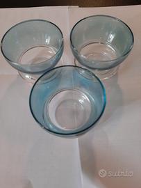 3 bicchieri cognac in vetro color azzurro, base color vetro