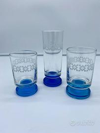 set di 16 bicchieri a calice basso in vetro lavorato vintange n. 6 da acqua n.6 da vino e n.4 da liquore