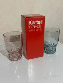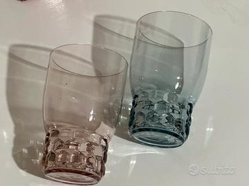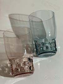 Set di due bicchieri Kartell della linea Jellies Family. - Design moderno e colorato. - Realizzati in materiale plastico trasparente di colore rosa e azzurro. - Base con motivo a nido d'ape.
