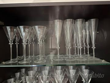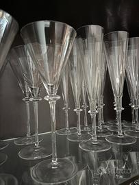 Set completo di bicchieri in cristallo per acqua, vino e champagne. Mai usati.
