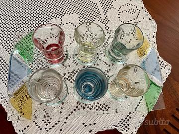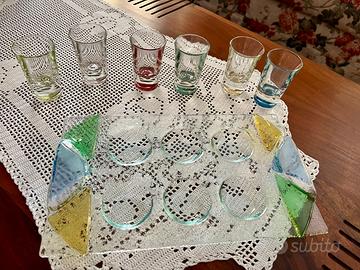 Vendo set in robusto vetro colorato composto da 6 bicchieri da liquore e relativo vassoio. Solo esposti. Ricevuti in regalo, vendo per inutilizzo