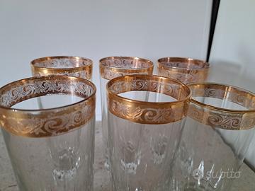 Sei bicchieri vintage bordati in oro.