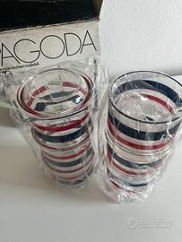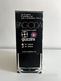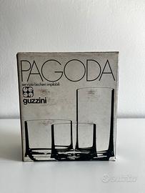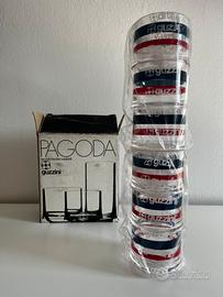 Set Pagoda di Guzzini, la celebre serie di bicchieri in acrilico e plastica trasparente stampato risale agli anni ’70, più precisamente al 1971, opera del designer Paolo Tilche per Fratelli Guzzini.