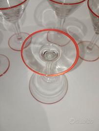 Bicchieri in vetro a V trasparenti con bordi rossi