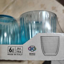 Set di sei bicchieri in vetro Bormioli con un elegante design rigato.