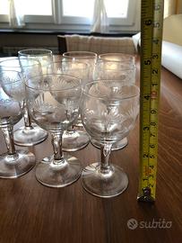 Bicchieri vin santo n 9 in cristallo molato anni 50/60 con incisioni Abbinabile a bicchieri per acqua vino champagne e liquore dello stesso tipo