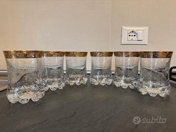 Set di 6 bicchieri vintage anni 70 in vetro decorato e con bordo dorato.