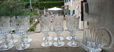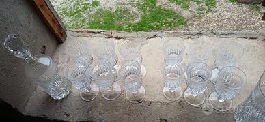 TENUTO BENISSIMO SERVIZIO DI BICCHIERI IN CRISTALLO MOLTO BELLI 12 BICCHIERI + 2 CARAFFE . NO SPEDIZIONE.