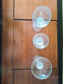 Servizio vintage di bicchieri con piedistallo Rosenthal composto da 12 bicchieri acqua, 12 vino e 12 spumante. In ottime condizioni, perché mai usato. Le sue misure in altezza sono di 18,7 (acqua), 16,6 (vino) e 15,6 (spumante). Il set é particolarmente elegante e raffinato per la sua altezza, per la finezza del cristallo, la rugosità del piedistallo.