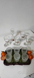 6 bicchierini da mandarino-limoncello con relativo vassoio, più quattro bicchierini da liquore a forma di stivale.