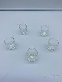 set di 5 bicchierini da liquore in vetro con delicati ramages,antichi di cui uno leggermente sciupato
