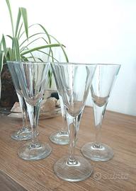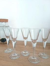 Cinque bicchierini in vetro per liquore, semplici ed eleganti, ideali per servire amari, digestivi o distillati. Linea pulita e senza tempo, perfetti sia per l’uso quotidiano che per una tavola più formale.