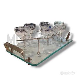 BICCHIERINI PZ. 6 CON VASSOIO VETRO MANICI METAQLL