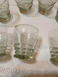 Set 7 bicchierini liquore vintage da collezione anni 40 in vetro trasparente colore verde acqua.