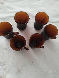6 bicchierini da liquore vintage vetro ambra con manico in ottime condizioni anni 70