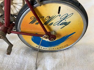 2 accendini da tavolo a forma di bicletta molto ben fatte. Entrambe funzionanti a gas. La bici misura 12cm x 16.5 cm. Gli accendini hanno molte parti mobili il volante la catena i freni. Marca wa wa xing anni 90 made in japan