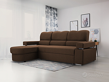 Cerchi un divano robusto e dallo stile contemporaneo? I nostri divani, prodotti da aziende competenti e specializzate, sono pezzi unici, realizzati su misura per soddisfare i tuoi gusti più particolari. Questo divano è realizzato con materiali di prima qualità e costruito per resistere nel tempo. La sua struttura solida e i rivestimenti di alta qualità assicurano una resistenza eccezionale. Puoi personalizzarlo con il colore che preferisci e goderti il comfort di un divano su misura. Prodotto esclusivo, creato appositamente per te. Sottolineiamo che il rivestimento della funzione letto che fuoriesce può essere di colore diverso da quello evidenziato in foto e comunque non è in tinta ed è differente dalla combinazione di colore del divano che si sceglie. Misure: lunghezza 254 cm – altezza 59/97 cm – profondità 178 cm – dimensione letto 200×128 cm Perché il divano Mauritius è così speciale? Materiali robusti e di qualità: anima in legno massello e imbottitura in schiuma di poliuretano ad alta resilienza dalla densità di 40 kg/m3. Piedi in metallo. Cinghie di sostegno in ferro per sostenere il peso e le sollecitazioni con maggiore resistenza Funzione letto: si trasforma facilmente in un letto in più, con meccanismo di apertura DELFIN, ideale per ospiti o per un riposo extra Contenitori: dotato di box contenitore dove riporre coperte, cuscini, biancheria da letto ecc. Posti: per 4 persone, offre spazio per tutta la famiglia o gli amici Design: forte e distintivo, perfetto per aggiungere un tocco di personalità al tuo salotto Versatilità: perfetto per ottimizzare lo spazio della zona living. La funzione letto e il box contenitore lo trasformano in un elemento multifunzionale, praticissimo per piccoli ambienti Rivestimenti: tessuto colorato di alta qualità, disponibile in 4 diverse tonalità. I tessuti del rivestimento sono realizzati al 100% in poliestere di alta qualità, resistente agli strappi e all’usura.