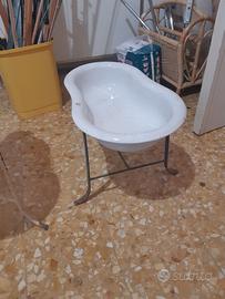Bidet antico da camera in ferro smaltato anni '30 con supporto in ferro ; l'altro bidet è in plastica, il supporto in ferro è degli anni 30.
