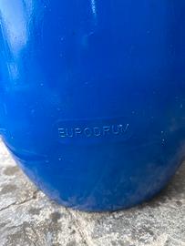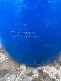 7 pezzi disponibili Si tratta di un fusto di plastica blu ad apertura totale (open top). Realizzato in HDPE (polietilene ad alta densità). Dotato di coperchio nero e anello di chiusura in metallo zincato con leva di serraggio. Spesso omologato ONU/ADR per il trasporto di merci pericolose solide. Capacità standard di circa 208 litri. Idoneo anche per il contatto alimentare, a seconda delle specifiche