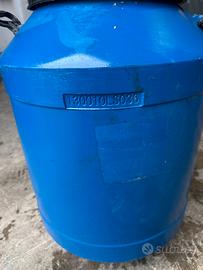 Questo è un fusto in plastica da 50 litri con coperchio a vite e maniglie.