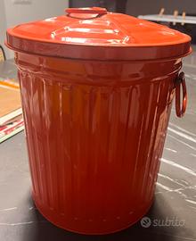 vendo causa trasloco bidoncino con coperchio di metallo arancione 24cm diametro x 24cm altezza, leggera ammaccatura. ritiro zona tuscolana