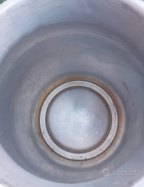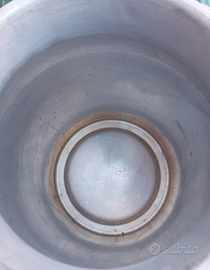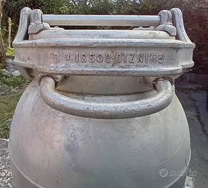 Bidone Del Latte Antico Guinzio Rossi Piccolo bidone d'alluminio per latte e/o panna. Sulla traversa del coperchio reca la scritta a rilievo Guinzio-Rossi & C.Un raro bidone per il trasporto del latte risalente agli Anni '50 (vintage), realizzato in robusto alluminio. Questo bidone è un magnifico pezzo di storia della filiera lattiero-casearia italiana e del design industriale dell'epoca.Preferibile consegna a mano.Pacco pesante 6,5 KG,con misure 45 40x38