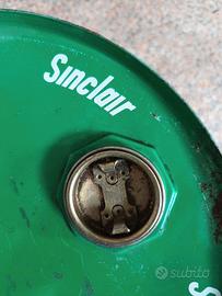 Bidone vintage in metallo marcato "Sinclair" lubrificanti con particolare disegno del dinosauro, misura altezza 61 cm., diametro 38 cm. particolare adatto per arredo negozi, locali ed anche per caratterizzare un appartamento, consegna a mano su Roma, Formello, Anzio in luogo da concordare.