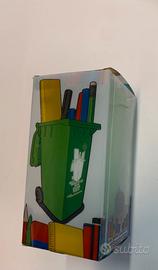 bidone porta penne da scrivania portapenne in plastica da scrivania a forma di bidone con ruote nuovo in confezione originale