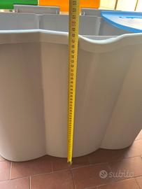Tre dicisioni con relativi coperchi colorati. Usato in casa