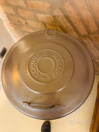 Cestino a trespolo portarifiuti originale del Comune di Piacenza, un pezzo autentico di arredo urbano dal forte carattere industrial.