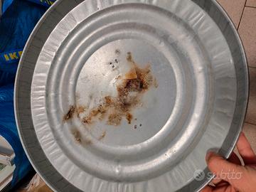 Bidone in lamiera zincata vintage, con coperchio e manici. Diametro 36,5cm