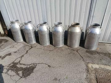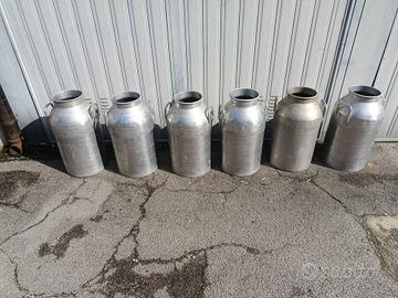 Vendesi bidoni latte in alluminio pesante, misura H. 63. D. 36. Ottimi come portaombrelli, portavasi per fiori, oppure in agricoltura per contenere granaglie. Belli anche come cestini in cichetterie, bar o gelaterie. Prezzo indicato per singolo pezzo. Possibilità di spedizione
