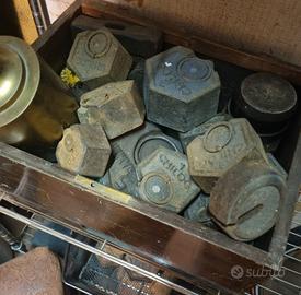 Complemento d'arredo esclusivo per agriturismi e musei contadini, questa antica bilancia a bilico in ferro e ghisa apparteneva a mio nonno, nato nel 1915 e impegnato in agricoltura. Pesava carichi notevoli in magazzini, fattorie o mulini come sacchi di cereali o animali. Fornisco come da foto anche i pesi esagonali che posizionati sul piattino laterale (e assieme al braccio graduato orizzontale) permettono di determinare il peso spostando un contrappeso (romano) lungo la scala. Ritiro a Baricella, comune della provincia di Bologna.