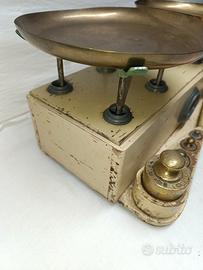 Vecchia bilancia degli anni 40/60 , , cassa in legno , pesi e piatti in ottone, in ottime condizioni originali, è funzionante. Ottimo per arredi classici o moderni.
