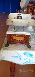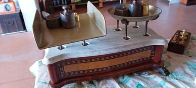Bilancia a piatti con pesi in ottone, restaurata. Peso 2 1 kg