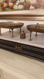 bilancia antica con 5 pesi in ottone