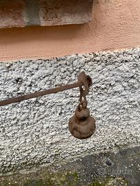 Antica bilancia a braccio in ferro completa di piatto, catene e contrappeso, originale d’epoca 🧲