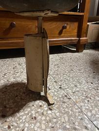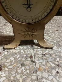 ANTICA BILANCIA DA CUCINA FINE 1800. Frontale in ghisa piatto in ferro cassa posteriore in ferro battuto meccanismi in ferro battuto molle in ferro barra dentata in ottone movimento meccanico funzionante sotto piatto anch’esso in ghisa sul laterale della bilancia un oggetto veramente antico e nonostante i suoi tanti anni con il suo invecchiamento rimane un oggetto affascinante