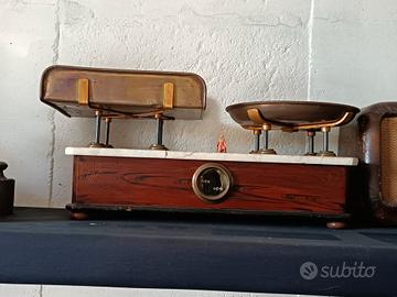 Bilancia d'epoca con timbri sui piatti e base di marmo. Funzionante. Ritiro Montespertoli.