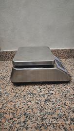 Bilancia compatata in acciaio INOX, progettata per ambienti lavorativi con elevati requisiti d'igiene come cucine professionali e industrie alimentari.