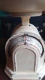 Bilancia antica ( anni '30 - '40) in metallo verniciato bianco crema. Scala 0 - 10 kg. Ha la rotellina per regolare lo 0; è funzionante ma non precisa.