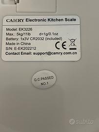 Vendo bilancia da cucina CAMRY modello EK3226, nuova, mai utilizzata. Ideale per chi cerca precisione e praticità in cucina, perfetta per pesare alimenti, ingredienti o ricette con massima accuratezza.