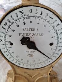 Bilancia da cucina vintage "Salter ' Family Scala "modello n°50 anni 40 / 50 produzione britannica , materiale in ghisa e ceramica. capacita di pesa 10 Kg. come si nota nelle foto ci sono diversi difetti specialmente nel piatto. Peso con imballaggio 4,5 a 5 kg. consegna a domicilio